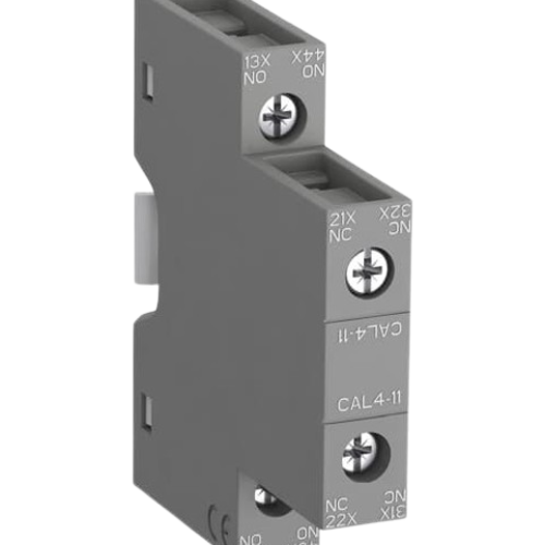 The CAL4-11 auxiliary contact block from ABB is a compact, industrial-grade accessory designed to expand the functionality of your contactor control systems. This 2-pole instantaneous auxiliary contact block provides both a normally open (1NO) and normally closed (1NC) contact, enabling reliable switching and signaling in automation and control circuits.