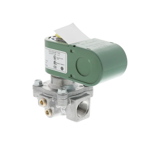 The ASCO K3A542V is a 1/2 inch direct-acting, normally closed (N/C) gas shut-off valve designed for reliable control of fuel gas in commercial and light industrial combustion systems. It operates on 110–120 V AC and is suitable for low-pressure service up to approximately 6 psi. The valve features a durable aluminum body and internal seals engineered for long service life. Upstream and downstream test ports allow for routine maintenance and safety verification. It is commonly used in gas burners, boilers, furnaces, heaters, and HVAC combustion trains.