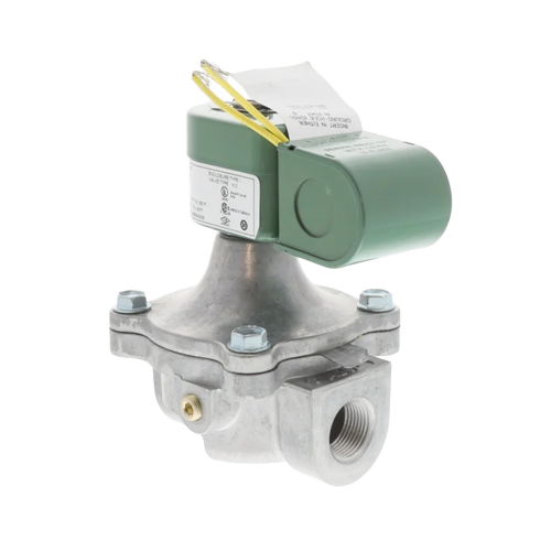 The ASCO K3A652V is a 2-way, normally closed fuel gas solenoid valve designed for reliable shutoff and control in HVAC and combustion systems. Featuring a 3/4" connection size and an aluminum body, this valve provides a lightweight yet durable solution for fuel gas service applications. The normally closed configuration ensures the valve remains shut when de-energized, delivering fail-safe operation in gas trains and burner assemblies. Operating on 120/60V AC, it integrates easily into standard control circuits and offers consistent performance in commercial and industrial environments.