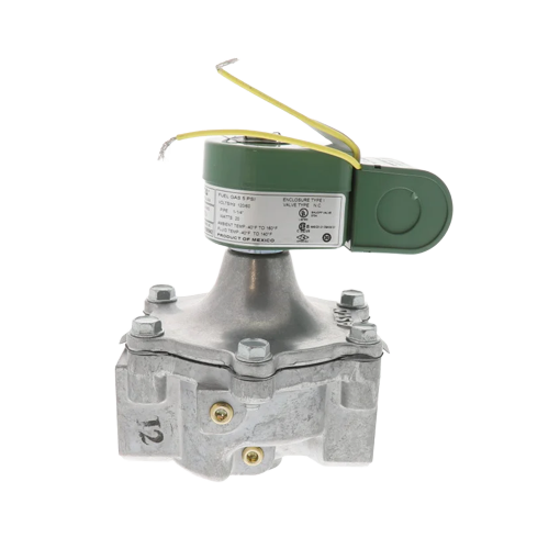 The ASCO K3A672V is a high pressure, normally closed (N/C) gas solenoid shut off valve designed for commercial and industrial fuel control applications. It operates on 120 V AC and features a 1 1/4" NPT threaded inlet and outlet suitable for larger gas lines. This valve provides reliable on/off control of natural gas or LP gas in systems such as commercial burners, furnaces, industrial heaters, and other combustion equipment. It is constructed with a rugged aluminum body and includes integrated test ports to support routine service and safety checks. It has a maximum differential pressure rating of about 5 psi and a high flow capacity for large scale systems.