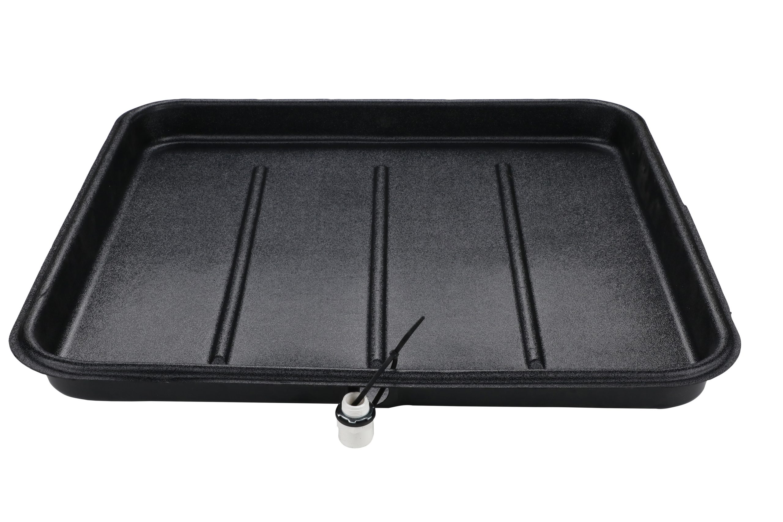 6-2626L Plastic Drain Pan, 26 in x 26 in 5 pack is used to collect condensate from cooling and evaporator coils in locations where damage to any building component could occur as a result of overflow. Includes 3/4 in fittings. Fully nestable for easy st