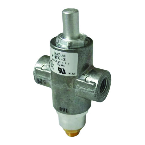 The BASO H19NA-4 1/4″ NPT High-Pressure Automatic Shut-Off Pilot Gas Valve provides reliable control for natural and LP gas systems up to 25 PSI. Featuring a 1/8″-27 NPT pilot tap on the right and a built-in flow interrupter, this valve ensures precise gas regulation and safe automatic shutoff for industrial and commercial heating applications.