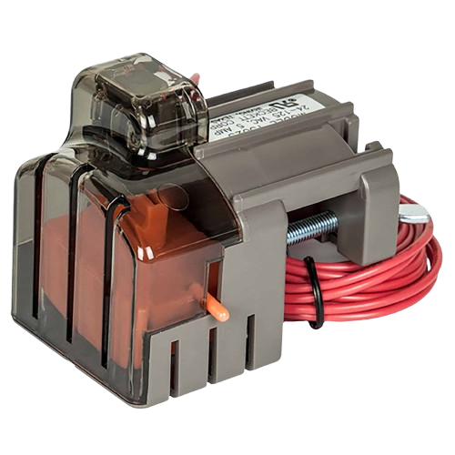 Beckett’s easy-to-use float-actuated condensate drain pan overflow safety switch provides a reliable means to monitor high water levels. The switch may be wired directly to the system to turn off the air conditioner or furnace equipment, or it can be wired to sound an alarm if the water level becomes too high.