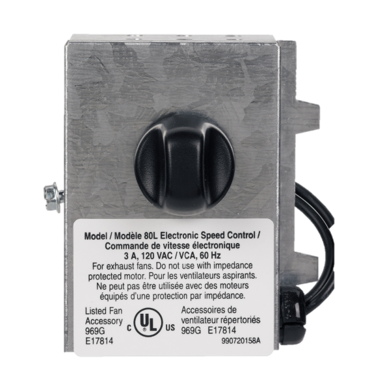 Upgrade your bathroom or utility fan’s performance and flexibility with the Broan‑NuTone 80L Variable Speed Control. Designed to seamlessly integrate with compatible ventilation systems, this durable controller lets you personalize fan speed for optimal airflow, comfort, and energy efficiency.