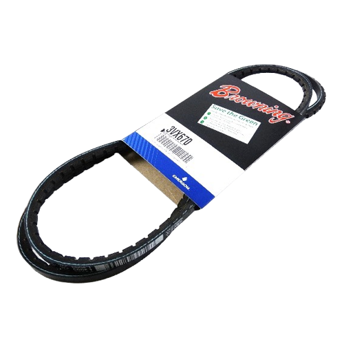 The Browning 3VX670 is a high-performance cogged narrow V-belt engineered for efficient power transmission in compact, high-speed drive systems. Manufactured to 3VX section standards, this belt provides increased horsepower capacity over classical V-belts while maintaining flexibility for use with smaller diameter sheaves. The notched (cogged) design improves heat dissipation and reduces bending stress, resulting in longer belt life and more consistent performance. With an approximate 67-inch outside length, the 3VX670 is well-suited for demanding HVAC and industrial equipment.