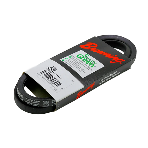 The Browning A39 is a classical wrapped V-belt designed for reliable performance in HVAC and industrial belt drive systems. Featuring an A-section profile, this belt is suited for light to moderate horsepower applications such as fans, blowers, and small pumps. The neoprene construction provides resistance to heat, oil, and abrasion, while the wrapped fabric cover ensures smooth engagement with sheaves and consistent operation. The A39 is a dependable replacement belt for standard A-section drives across a wide range of equipment.