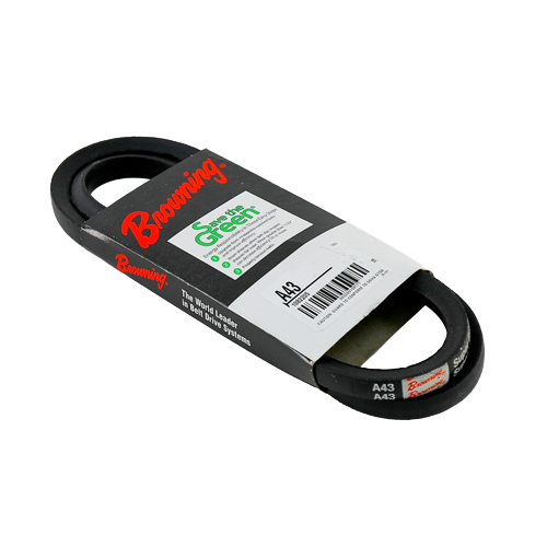 The Browning A43 classical V-belt is a general-purpose wrapped belt designed for reliable performance in HVAC and light industrial drive systems. Constructed from durable neoprene with a wrapped fabric cover, this belt provides dependable power transmission with resistance to heat, oil, and abrasion. Engineered for classical A-section sheaves, it delivers up to 95% efficiency in standard duty applications. The A43 size is commonly used in fans, blowers, and small machinery requiring consistent operation and long service life.