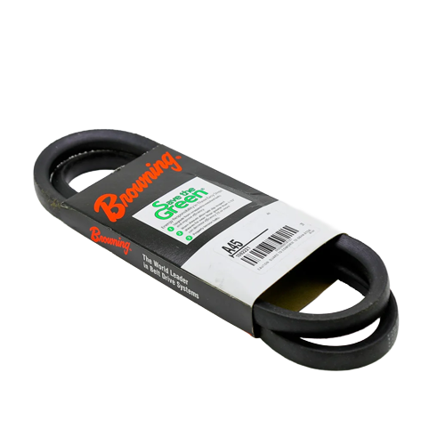 The Browning A45 Super Gripbelt is a classical wrapped V-belt designed for dependable power transmission in HVAC systems, fans, blowers, and industrial equipment. Manufactured by Browning (Regal Rexnord), this A-section belt features neoprene construction with a wrapped fabric cover for durability and quiet operation. With an approximate 47.2-inch outside length and 46.3-inch pitch length, it fits standard A-section sheaves and provides consistent traction in single or multiple belt drive systems.