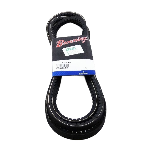 The Browning BX112 Gripnotch V-belt is a cogged classical BX-section belt designed for efficient power transmission in HVAC equipment, industrial fans, pumps, and belt-driven machinery. Precision molded cogs increase belt flexibility and improve heat dissipation, allowing the belt to run cooler and maintain grip on smaller sheaves and high-speed drives. The belt features a BX section profile with approximately 21/32 inch top width and 115 inch outside length, along with a 113.8 inch pitch length. Constructed with EPDM rubber and a reinforced tensile cord, the Browning BX112 provides reliable durability for demanding industrial drive applications.