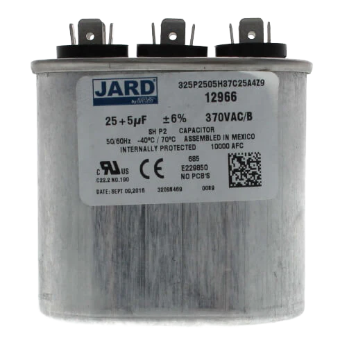 Dual Run Capacitor, 25/5 MFD, 370V, Oval — supports compressor and fan