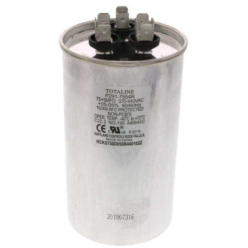 When your HVAC outdoor unit’s motor isn’t performing as expected, choosing the correct capacitor is key. The Carrier P291-7554R is a high-quality, genuine OEM dual-run capacitor designed to meet the demanding electrical and thermal requirements of commercial and residential HVAC systems. With a capacitance of 75/5 µF and a voltage rating of 440 V, this round dual capacitor supports both the fan motor and compressor circuits, making it an essential part of your system’s performance and reliability.