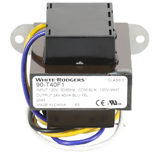 The Copeland Comfort 90-T40F1 is a control transformer designed for HVAC and commercial equipment applications requiring reliable step-down voltage power. It converts 120V primary input to a 24V secondary output with a 40VA capacity, making it suitable for powering thermostats, relays, and control circuits. Featuring a foot mount design, this transformer is intended for secure installation in control panels and equipment assemblies. Built for consistent performance, it supports dependable operation in heating, ventilation, and air conditioning systems.