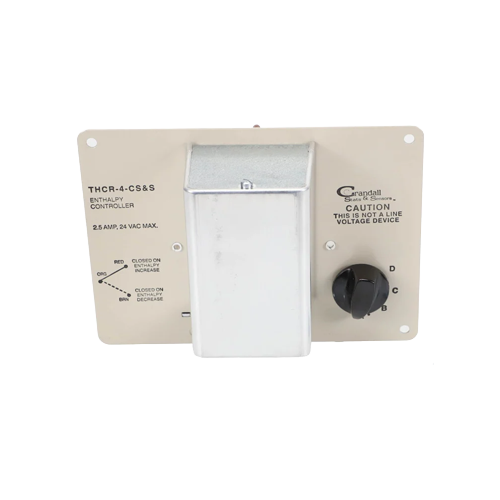 The Crandall THCR-4-CSS Two-Position Low Voltage Enthalpy Control is a pneumatic/low-voltage control device designed to monitor and actuate based on combined temperature and humidity (total heat) conditions. This enthalpy controller uses a SPDT switch to provide two-position control output, helping maintain desired environmental conditions in HVAC applications. Built to Crandall standards, it delivers repeatable transitions as conditions cross set thresholds, making it a reliable part of energy management and economizer strategies. Ideal for HVAC technicians and controls contractors, it supports efficient operation of ventilation and control systems.