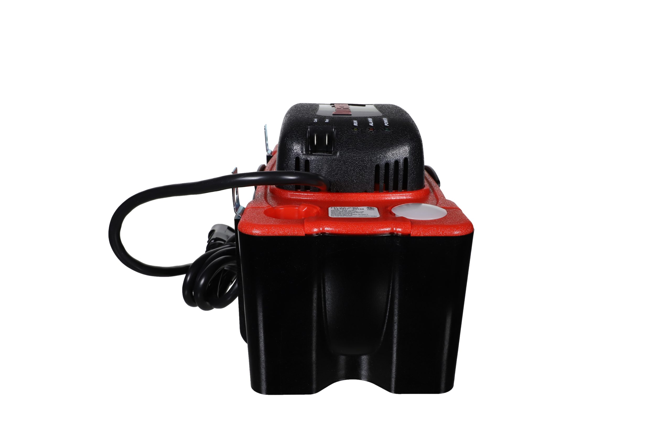 The DiversiTech FP-22 series pumps beat the industry standard of 20’ lift height by 2 feet and come with innovative features such as: vibration dampening feet, metal hang tabs, four inlet holes with build in “P” traps (and 3 poly covers for the unused inlet holes), LED indicators, float switch and duckbill-style check valve, plug and protector and detailed installation instruction. Two terminals are provided to allow the installer the flexibility to connect air-handler shut-down for flood avoidance. This is an important safety consideration.