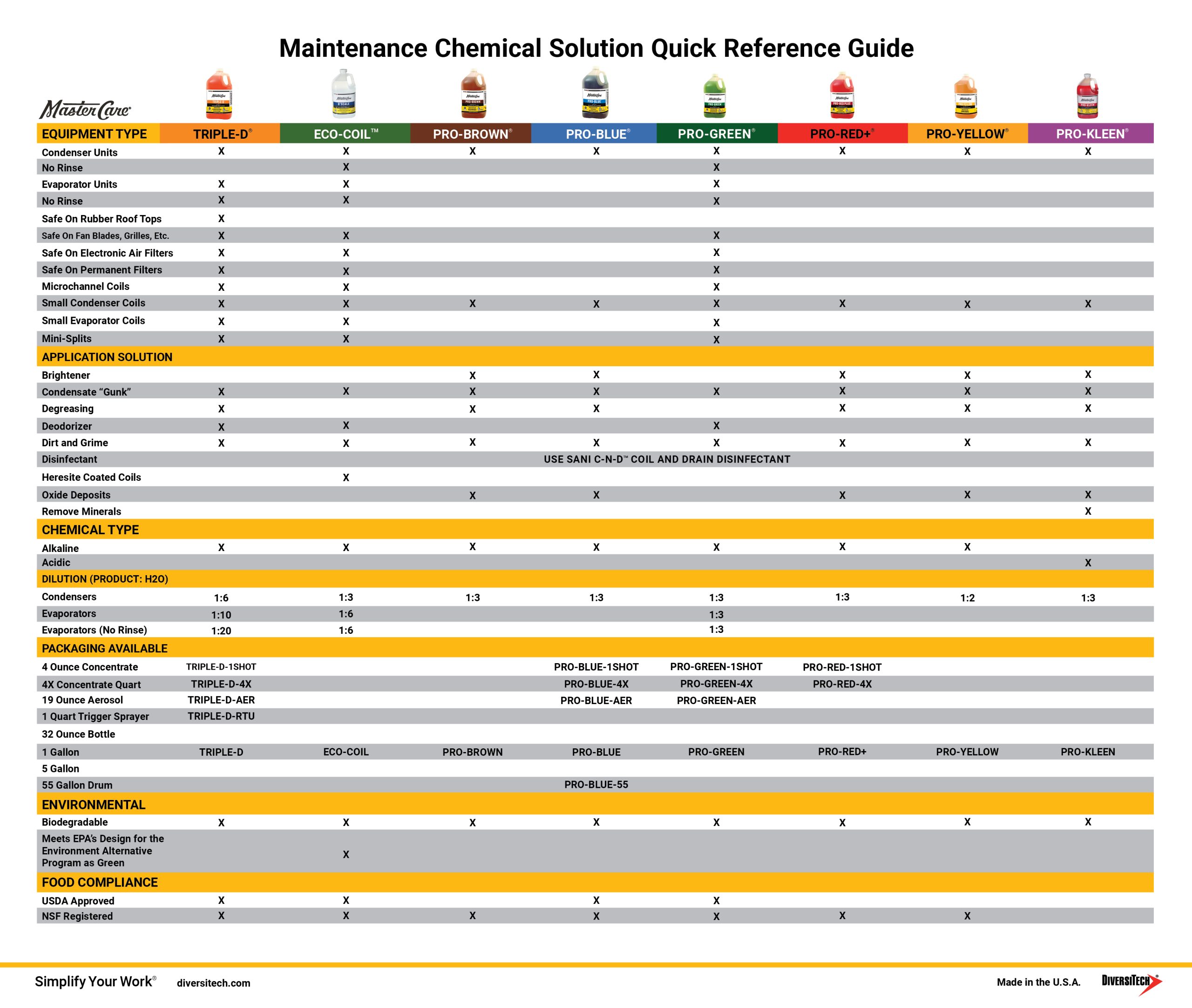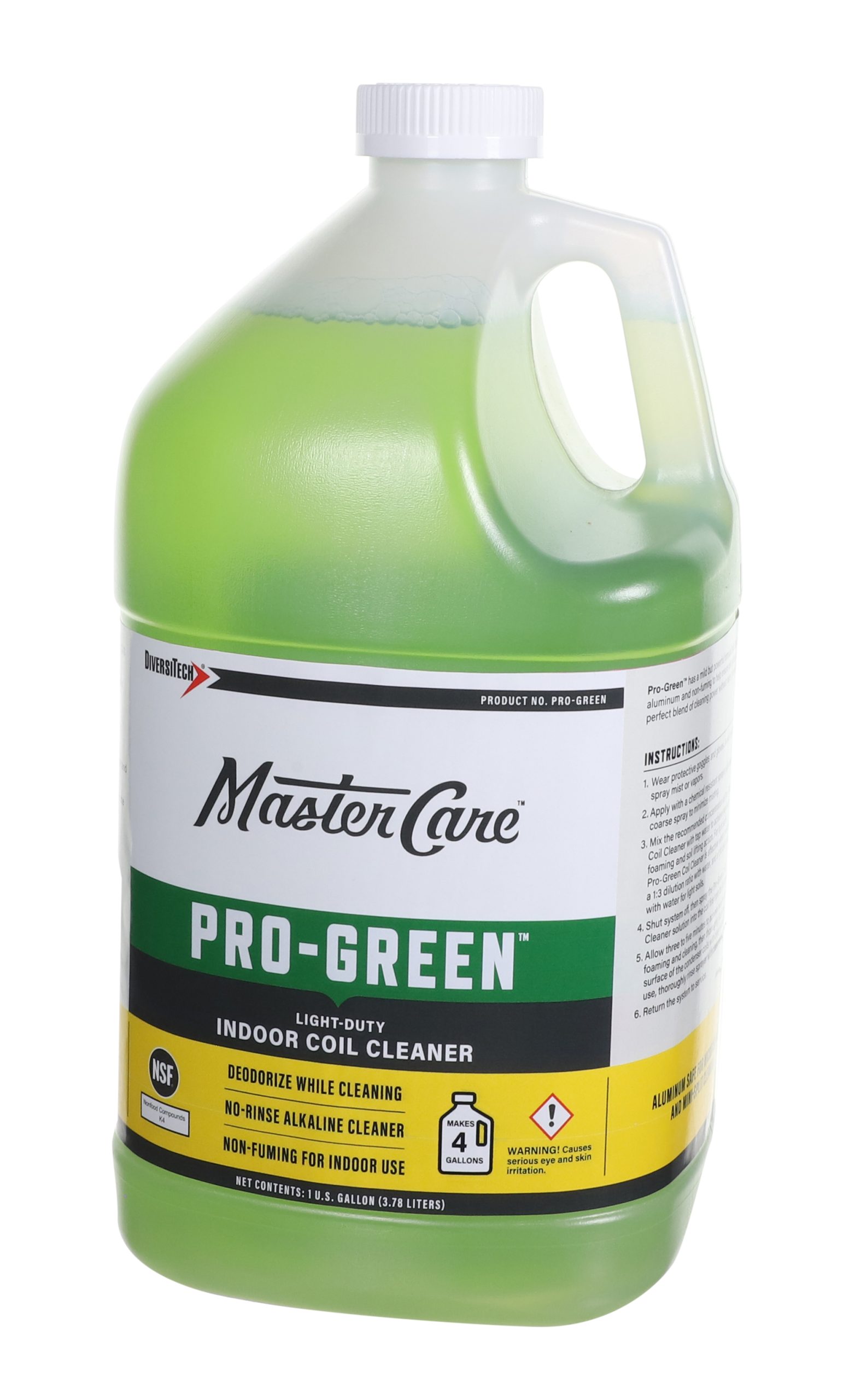 MasterCare™ PRO-GREEN Coil Cleaner is a no-rinse, mild alkaline coil cleaner designed for air-cooled condensers, evaporators, electronic and permanent filters, fan blades, grilles, mini-split and microchannel applications. Pro-Green cleans deposits on coi