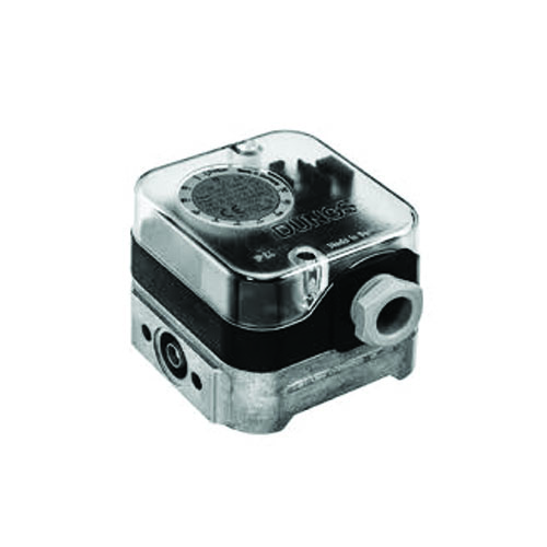 The Dungs 266954 air pressure switch is designed for precise monitoring of very low air pressure in commercial and industrial HVAC and combustion air systems. With an adjustable pressure range of 0.4 to 3 mBar, this SPDT pressure switch provides accurate and reliable operation in sensitive applications. The auto reset function allows normal operation to resume automatically once proper pressure levels are restored. Its IP54 rated enclosure offers protection against dust and splashing water, while the positive and negative NPT connections ensure flexible and secure installation.