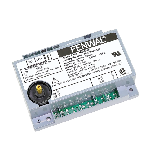 The Fenwal 35‑605959‑223 is a 24 VAC microprocessor‑based direct spark ignition control module engineered for reliable ignition sequencing and flame supervision in gas‑fired HVAC systems and industrial heating equipment. This control board delivers precise timing, advanced safety features, and diagnostic capabilities to ensure efficient burner start‑up and ongoing system performance.