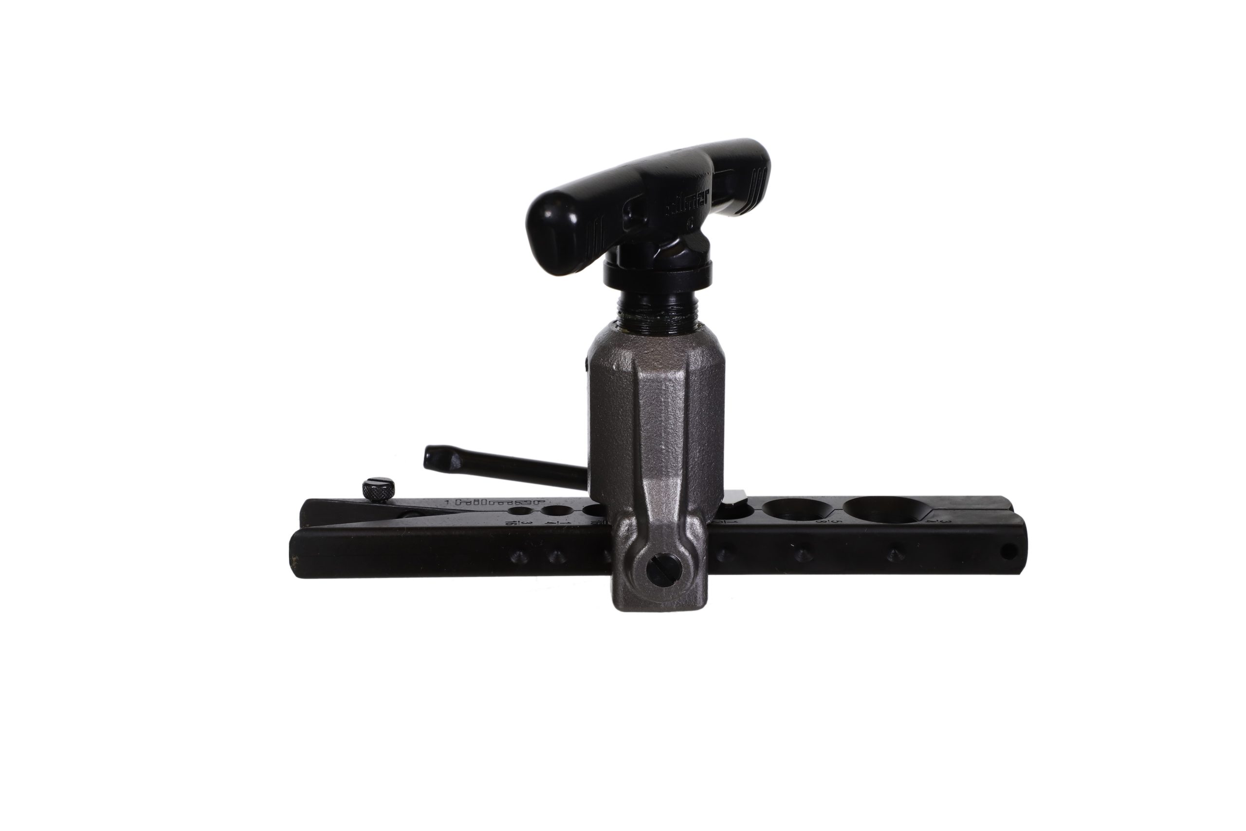 A tube-stop arrow slides to set correct height and positioning, while ball detents allow for easy flaring cone alignment.
