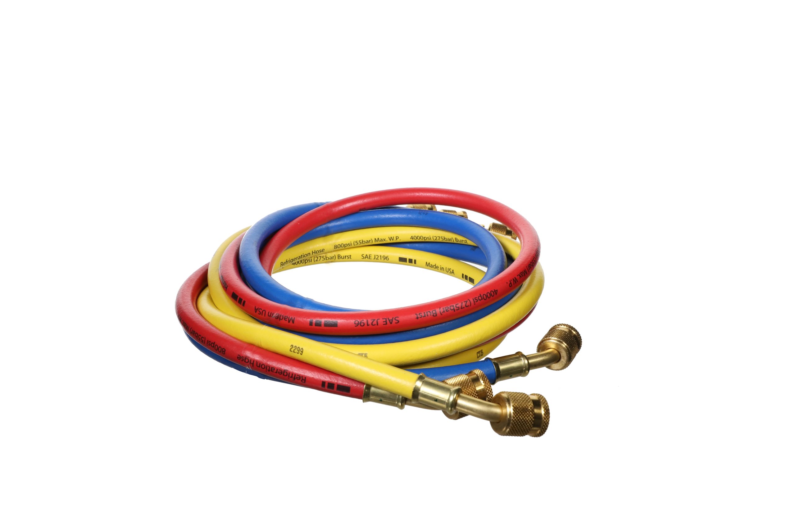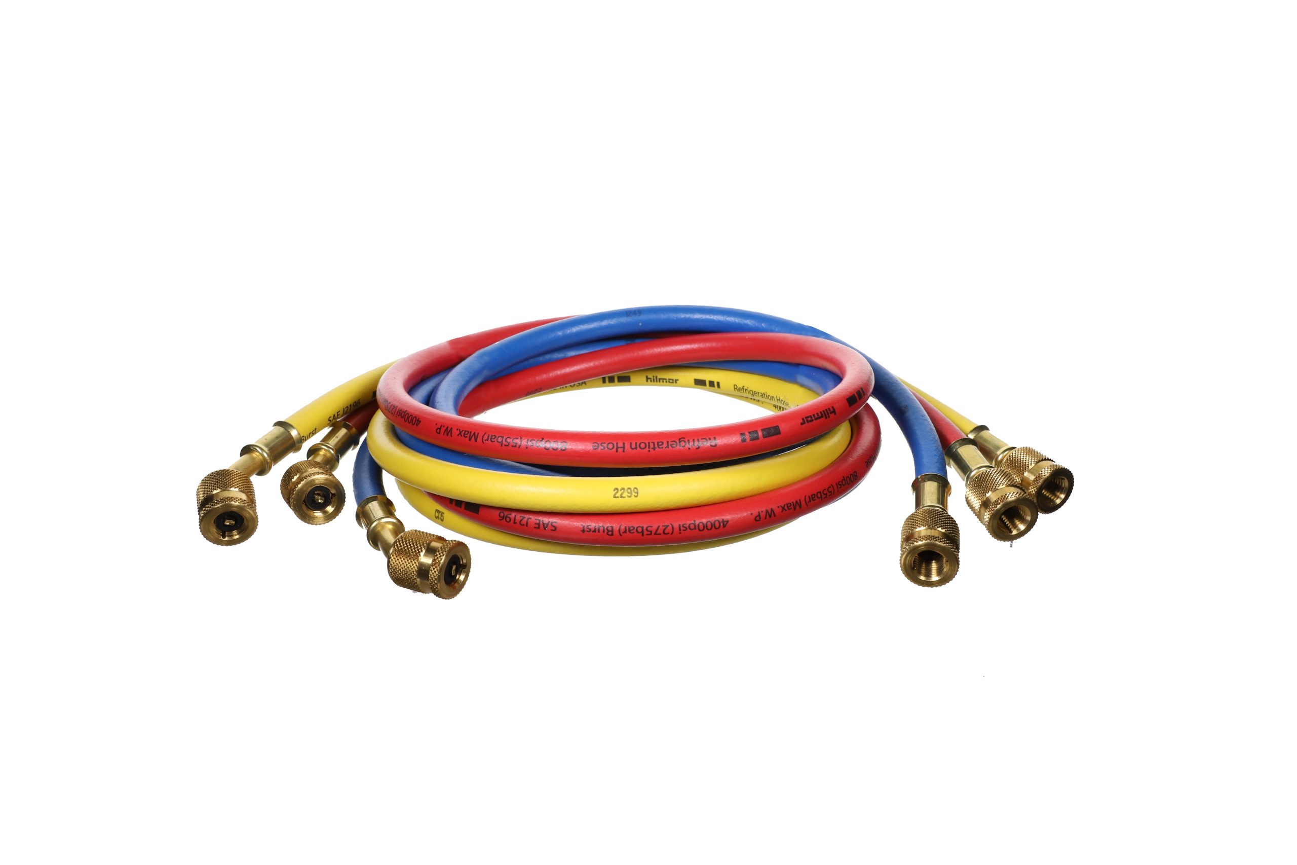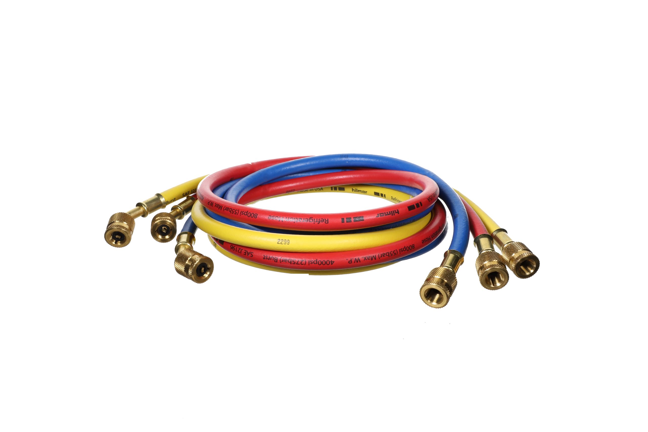 hilmor 36” and 60” Refrigeration Hoses are designed with smart features including an extra abrasion-resistant layer for tough environments. Each is rated for 800 PSI working pressure, which means they can handle the newest high-pressure refrigerants.