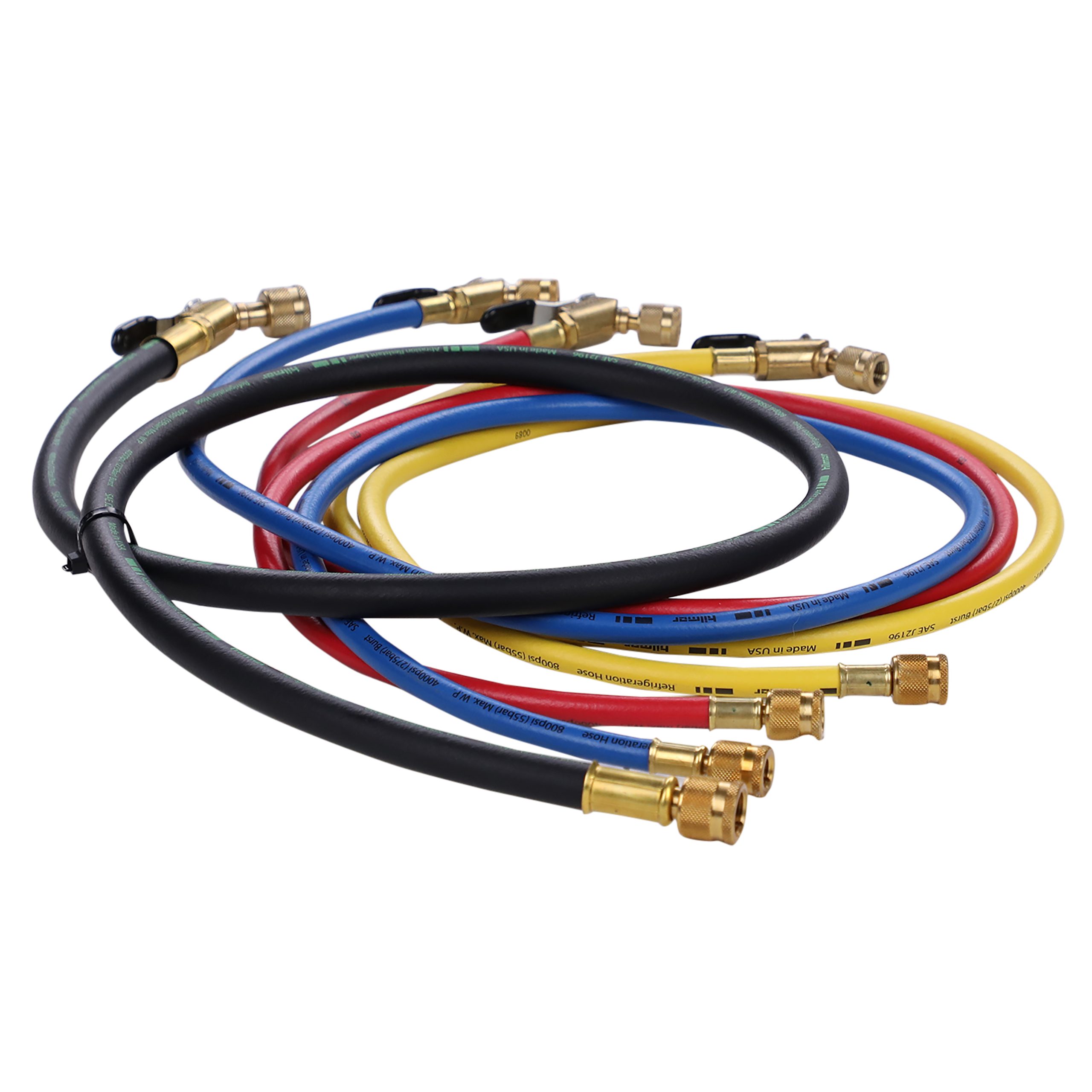Our retooled hose includes an easy turn valve for added control of refrigerant loss. Features an extra abrasion-resistant layer for superior protection in tough conditions. All of our hoses are rated for 800 PSI working pressure to work with the newest hi