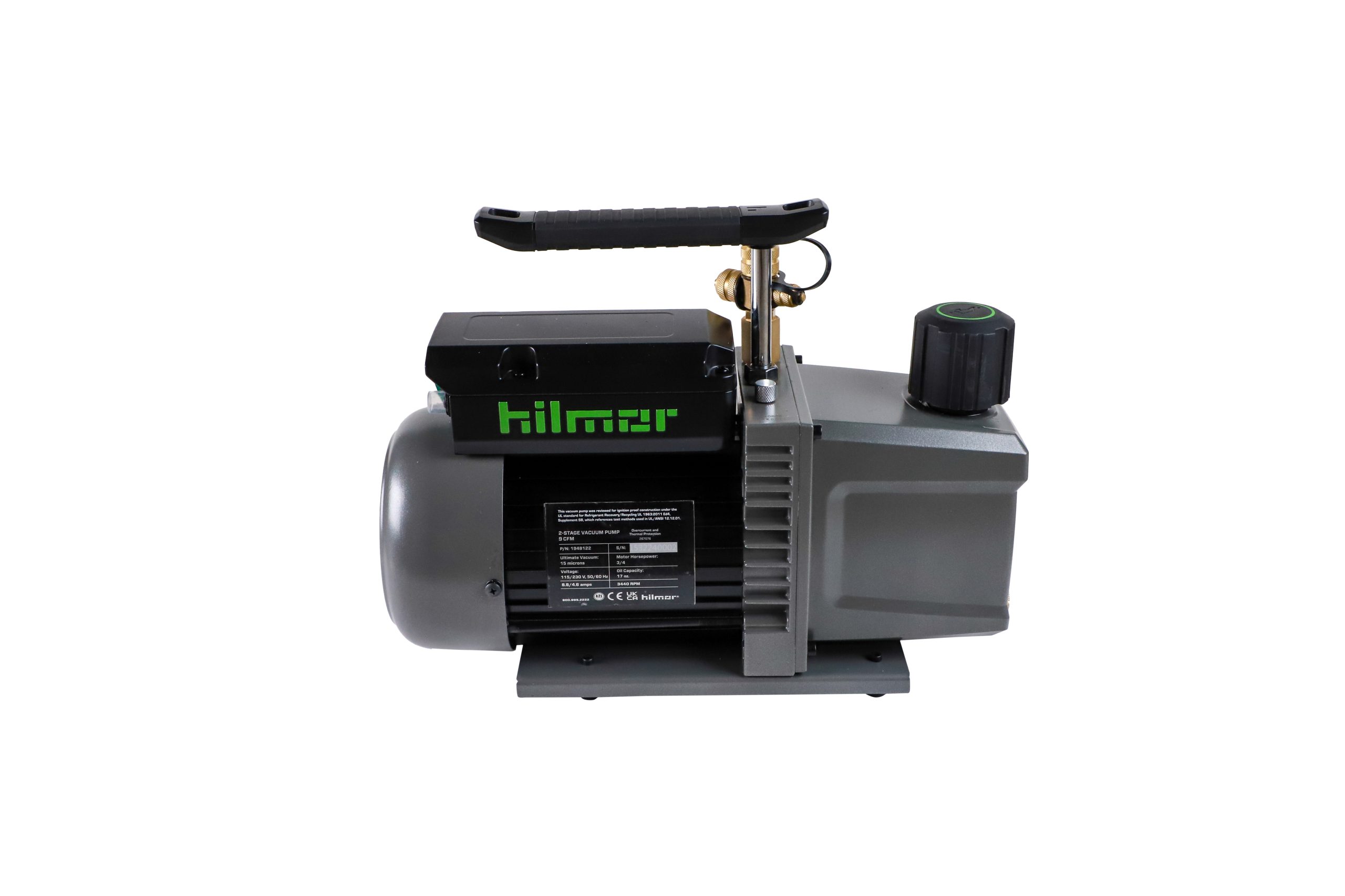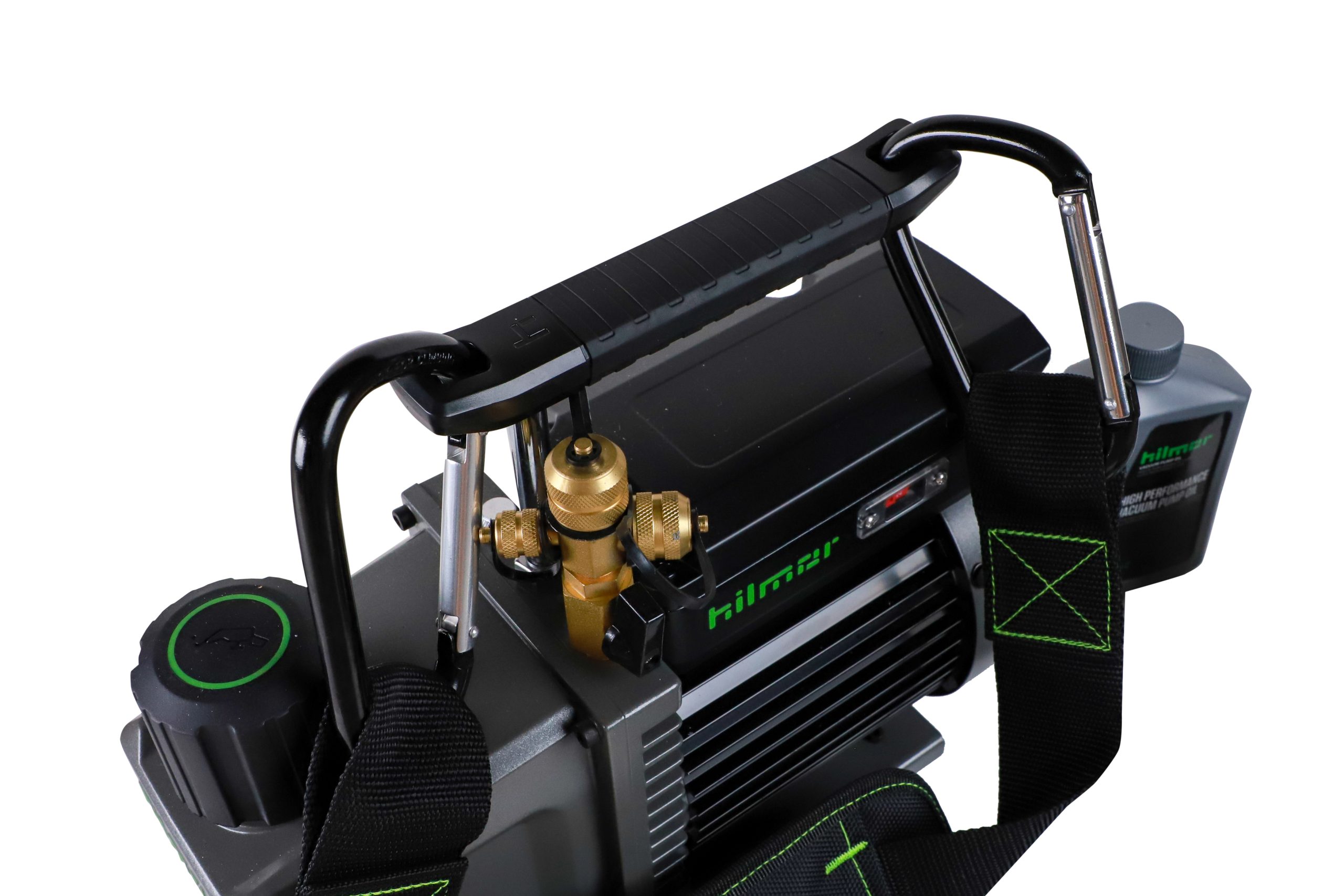 Two durable hoist points make transporting the vacuum pump easier. Compatible with the hilmor HVAC/R Carrying Strap.