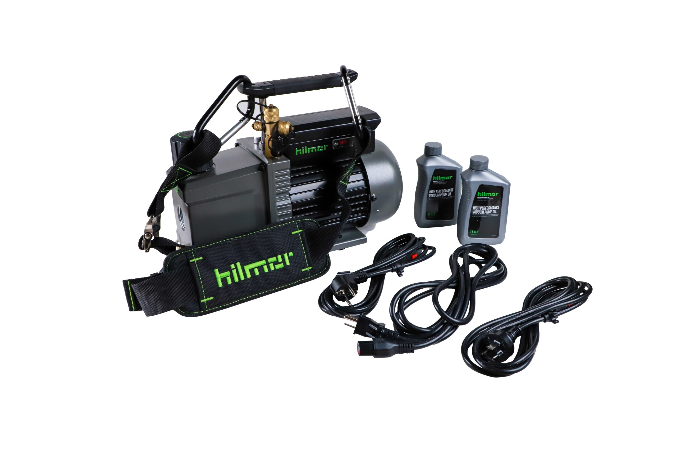 Your days of messing around with clunky, unreliable pumps are over. The first thing you’ll notice is how two durable hoist points allow you to transport your vacuum pump with ease. Simply attach the hilmor HVAC/R Carrying Strap, throw it over your shoulde
