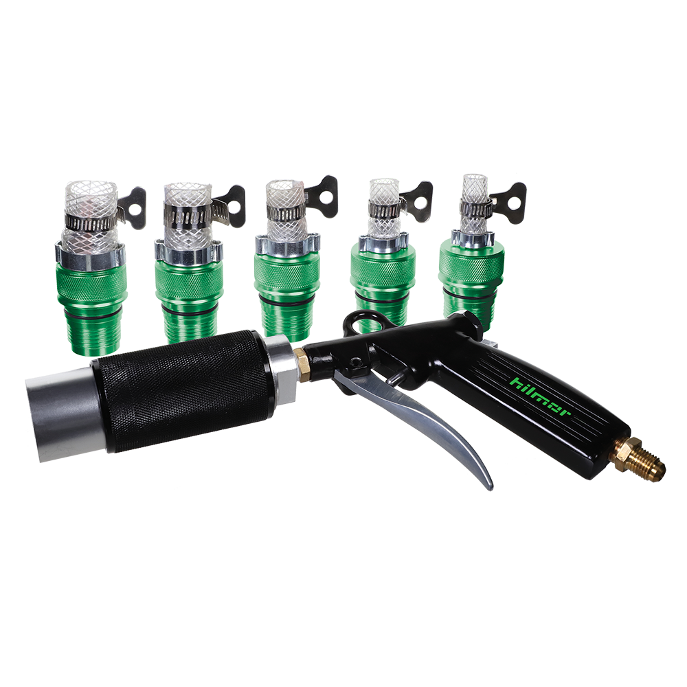 The hilmor Lineset Cleaner uses a pressurized source to launch the carefully selected specialized foam puck into the line set that effectively wipes the pipe clean of all contaminants and remaining refrigerants.