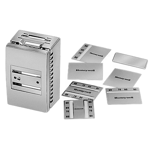 The Honeywell 14004406‑910 cover kit is a satin chrome replacement cover designed to seamlessly refresh classic pneumatic thermostats such as models TP970, TP971, TP972, and TP973. It accommodates both horizontal and vertical mounting layouts and includes multiple window inserts for displaying either setpoint, temperature, or both—covering the full range of 59–90 °F (15–32 °C).