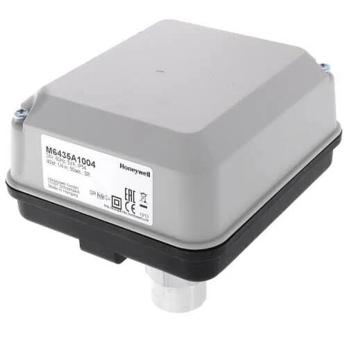The Honeywell M6435A1004 is a compact, spring-return electric actuator built for precise floating control of V5852/V5862 two-way and V5853/V5863 three-way cartridge globe valves. Providing reliable room-by-room temperature management for fan coil units, induction units, and small hydronic systems, this actuator enhances both installation flexibility and control performance.