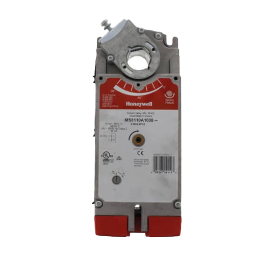 The Honeywell MS8110A1008 is a robust two-position damper actuator with spring return functionality, designed for HVAC systems that require reliable, automatic control of air dampers. Operating on 24 VAC power, this actuator delivers a torque output of 88 lb-in, making it ideal for modulating or two-position control in commercial air handling units, economizers, and zone control applications.