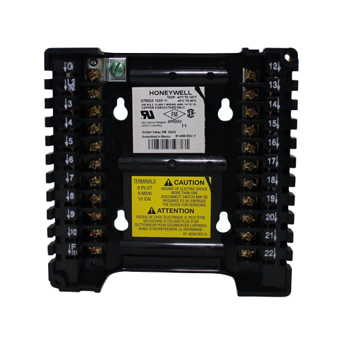 The Honeywell Q7800A1005 is a durable, panel-mount wiring subbase specifically designed for the 7800 Series relay modules and S7830A Expanded Annunciator. With 22 field-wiring terminals and precision bifurcated contact connections, this subbase simplifies relay installation and maintenance in HVAC control cabinets.