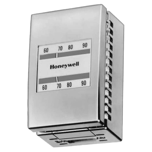 The Honeywell TP973B2171 is a high-performance pneumatic thermostat designed for single-temperature control in commercial HVAC systems. This reverse-acting thermostat modulates output pressure in response to rising temperatures, making it ideal for cooling applications. Featuring a sleek satin chrome cover, it combines functionality with modern aesthetics—perfect for visible wall-mounted installations in offices, schools, and public buildings.
