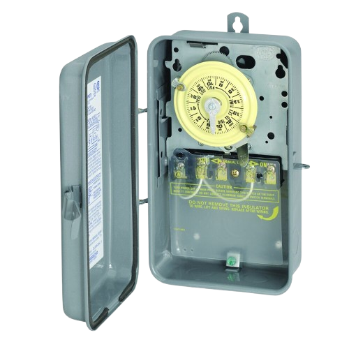 The Intermatic T104R is a rugged, heavy-duty 24-hour mechanical time switch designed for reliable, automatic on/off scheduling in commercial, residential, and light-industrial settings. Built as part of the trusted T100 series, this timer delivers long-lasting performance and broad compatibility — ideal for lighting, motors, pumps, HVAC equipment, and other high-power loads.