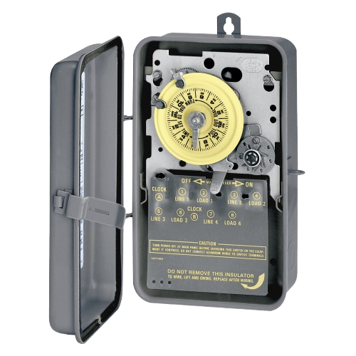 The Intermatic T173 is a heavy-duty mechanical time switch built for reliable, automatic on/off control of lighting, HVAC, pumps, motors, and other electrical loads. Designed for commercial, residential, and light-industrial environments, this timer offers robust capacity, a flexible “skip-a-day” feature, and a durable build for consistent, maintenance-free scheduling.
