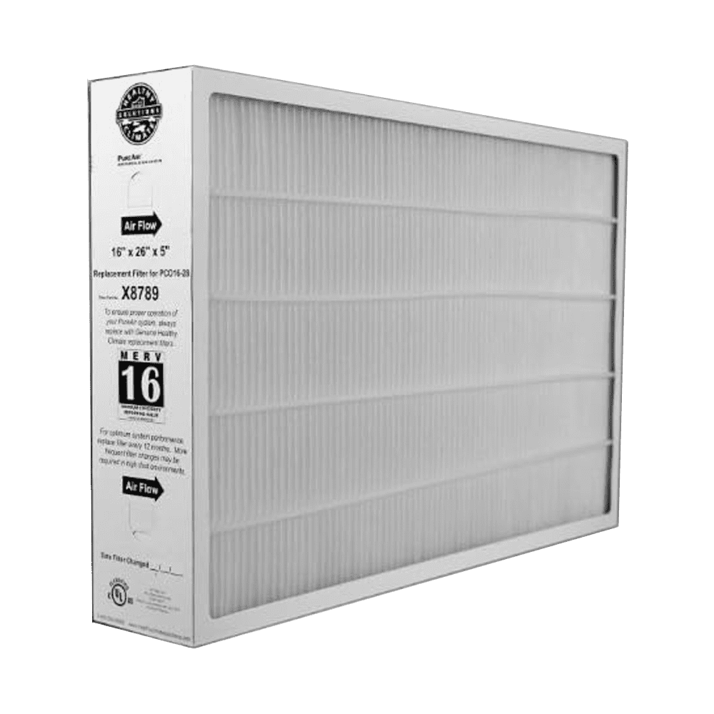 The Lennox Healthy Climate PureAir replacement furance filter uses a MERV 16 pelated filter (Lennox X8789) to capture particles in the air stream. By removing contaminants like dust and dander, the PureAir system helps family members in your household breathe easier, especially allergy and asthma sufferers.