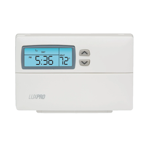 The LUX Products PSP511LC-010 is a programmable thermostat designed for residential HVAC systems requiring 1 heat and 1 cool operation. Featuring a 5-2 day programming schedule, it allows users to set weekday and weekend temperature settings to improve comfort and energy efficiency. This thermostat is compatible with standard gas, oil, and electric systems and provides a straightforward interface for easy setup and operation. Ideal for retrofit and replacement applications, it offers dependable performance and flexible scheduling control.