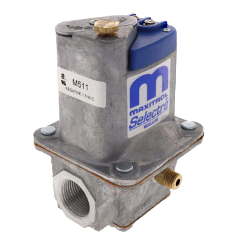 The Maxitrol M511‑3/4 is a modulating gas valve engineered for direct‑fired, negative‑pressure burner systems. As part of Maxitrol’s Selectra line, this valve delivers smooth, continuous gas flow modulation with no mechanical butterfly or motor drive. It’s ideal for heating systems that require fine temperature control and stability.