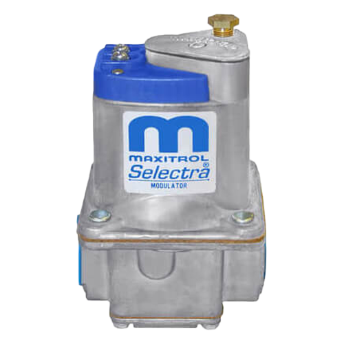The Maxitrol M520B‑1/2 is a ½‑inch gas modulating valve, designed especially with low‑fire adjustment on both ends. It is engineered for use in Selectra modulation systems, including indirect fired atmospheric burner applications. This valve set helps achieve precise control of gas flow, improving temperature stability and energy efficiency.