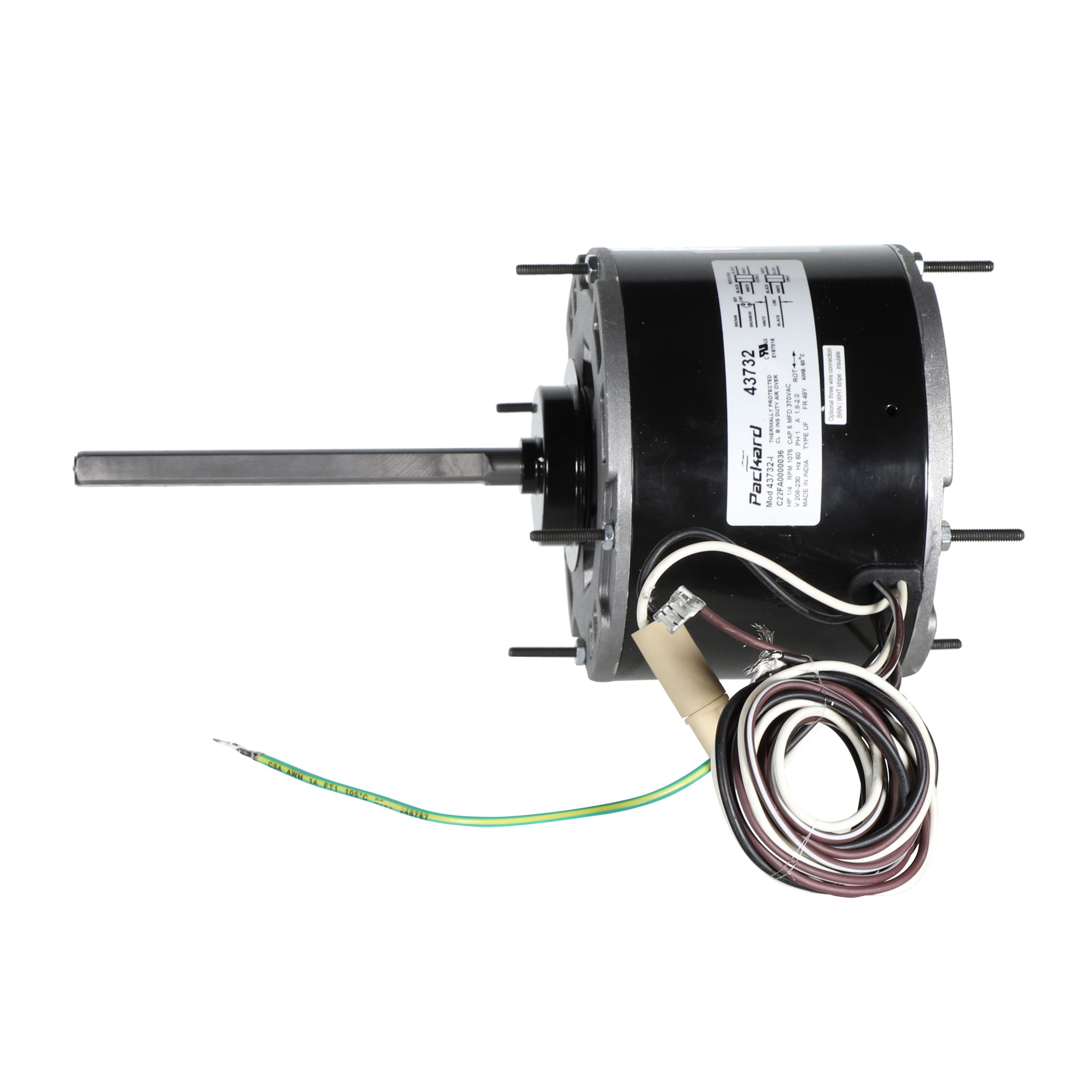 The Packard 43732, 1/4 HP 1075 208-230V condenser fan motor provides a reliable aftermarket replacement for numerous OEM blower motors. The PSC design provides efficiency while the mounting options and long leads allow for easy and adaptable installation