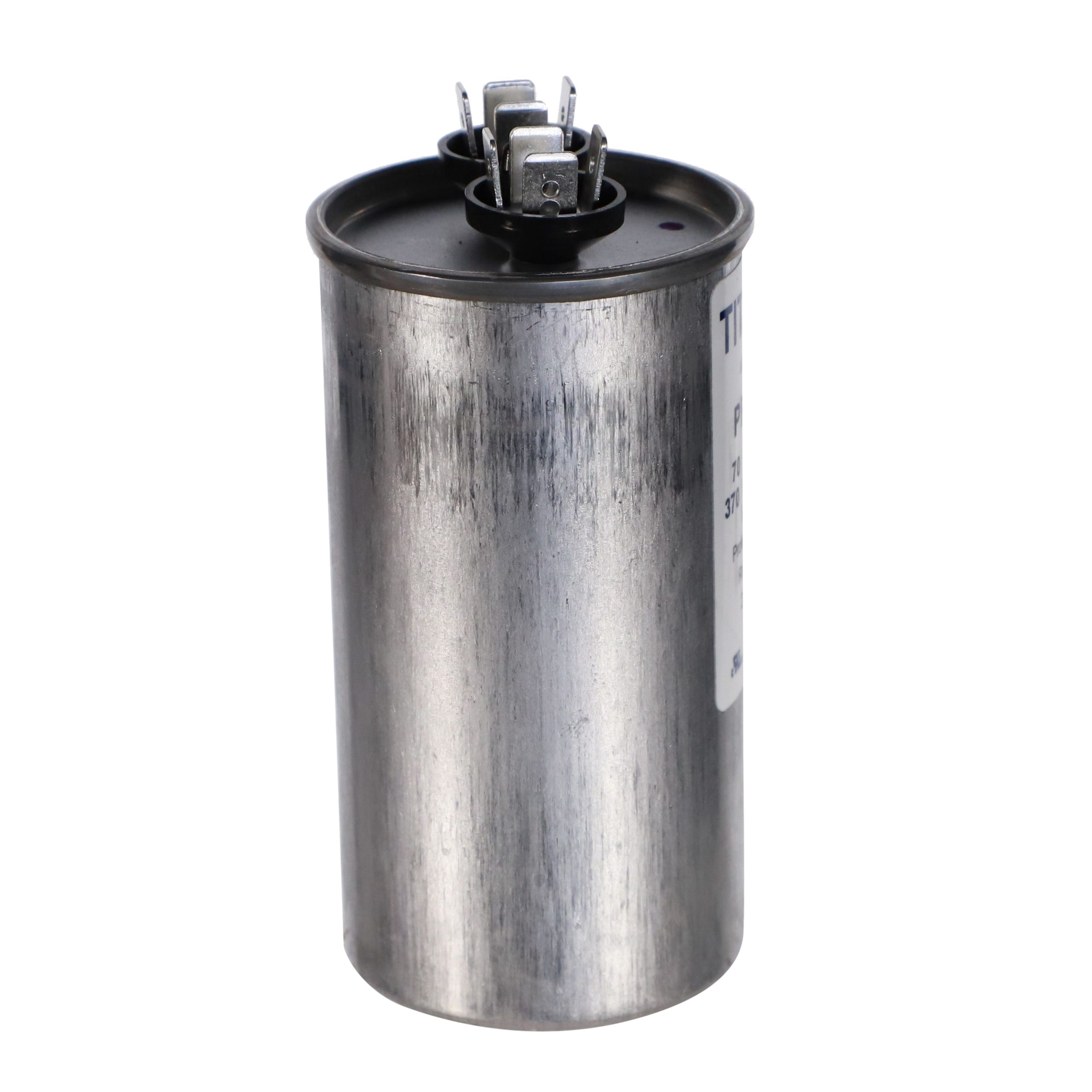 The Packard PRC70A is a Titan HD 70 MFD, 370V, Round Single Run Capacitor for HVAC motors and compressors. Titan HD capacitors are proudly Made in USA and engineered for professional-grade reliability with a 60,000-hour operating life, meeting the rigorous EIA-456-A industry standard. The patented, environmentally friendly oil prevents corrosion and optimizes heat transfer, while the UL-approved pressure-sensitive interrupter safely removes the capacitor from the circuit at end of life.