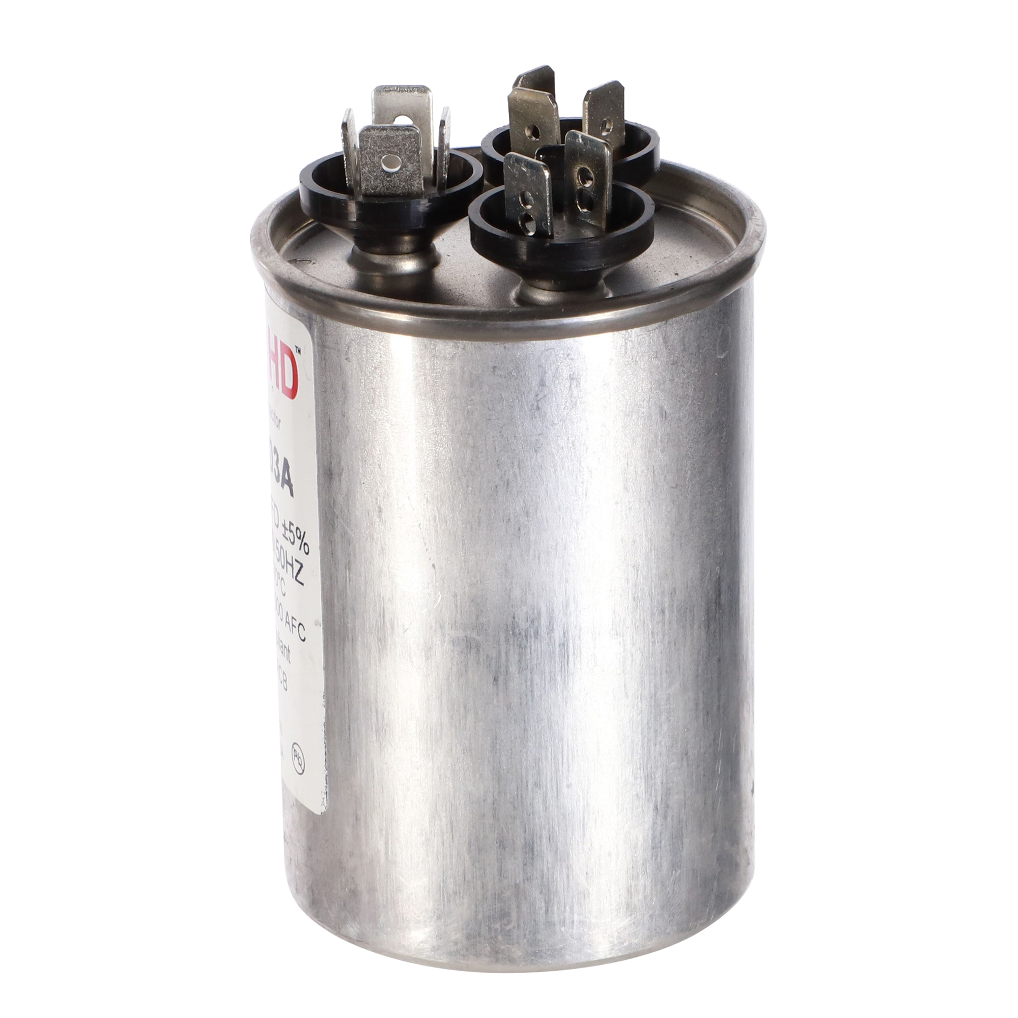 The Packard PRCD503A is a Titan HD 50+3 MFD, 370V, Round Dual Run Capacitor for HVAC motors and compressors. Titan HD capacitors are proudly Made in USA and engineered for professional-grade reliability with a 60,000-hour operating life, meeting the rigorous EIA-456-A industry standard. The patented, environmentally friendly oil prevents corrosion and optimizes heat transfer, while the UL-approved pressure-sensitive interrupter safely removes the capacitor from the circuit at end of life. This dual-rated capacitor houses two capacitance values in a single unit, powering both the compressor and the fan motor simultaneously – simplifying installation and reducing component count.