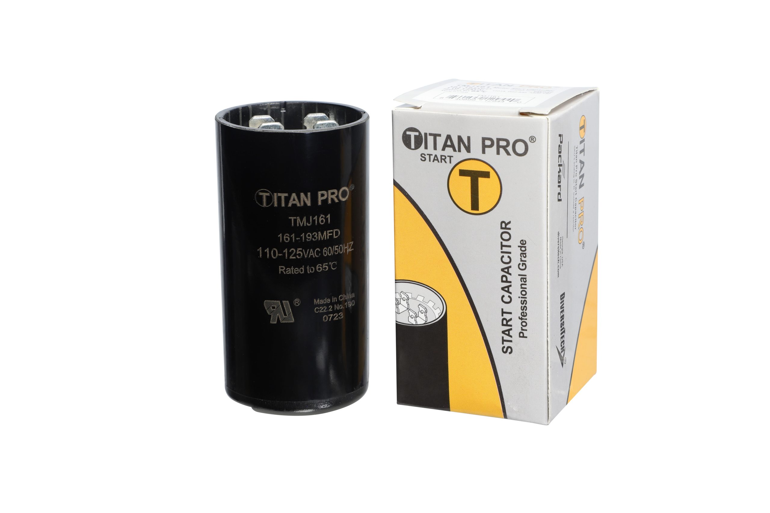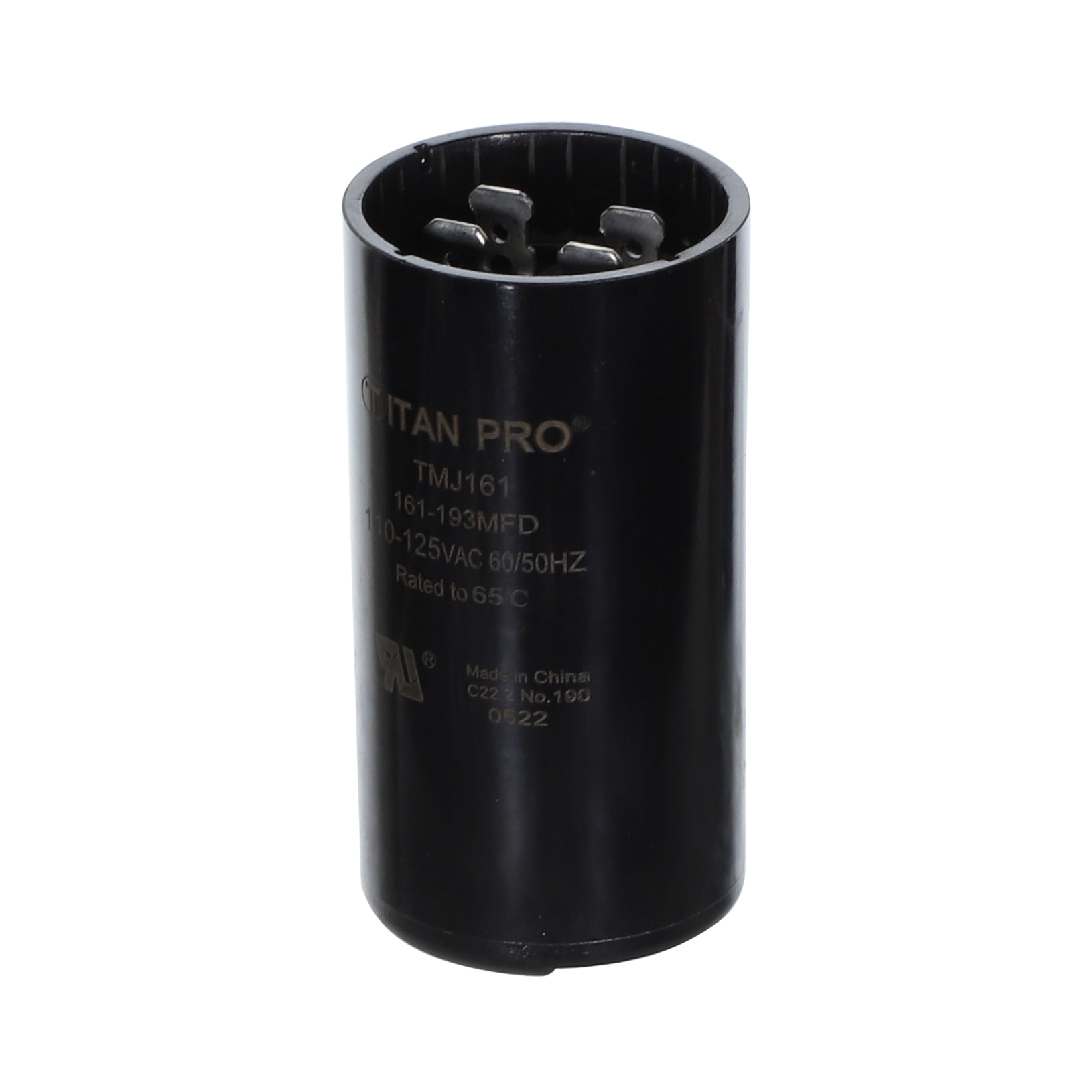 The Packard TMJ161 is a 193 MFD, 110-125V AC Motor Start Capacitor for single-phase HVAC compressors and motors. Start capacitors provide the extra torque needed during motor start-up. Once the motor reaches running speed, the start capacitor is switched out of the circuit by a potential relay or current relay. These capacitors are used in a wide range of residential and commercial HVAC applications.