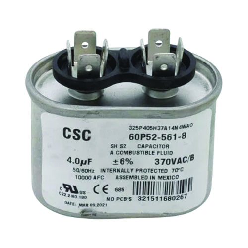 The Reznor 163894 4 MFD 370 V oval capacitor with bracket is designed to support the start and run performance of blower and fan motors in compatible Reznor HVAC heating and ventilation equipment. With a built‑in mounting bracket, this capacitor assembly ensures secure installation while providing stable electrical phase shift for efficient motor operation. Manufactured to OEM specifications, it is an essential replacement component for maintaining reliable motor performance in gas‑fired HVAC systems.