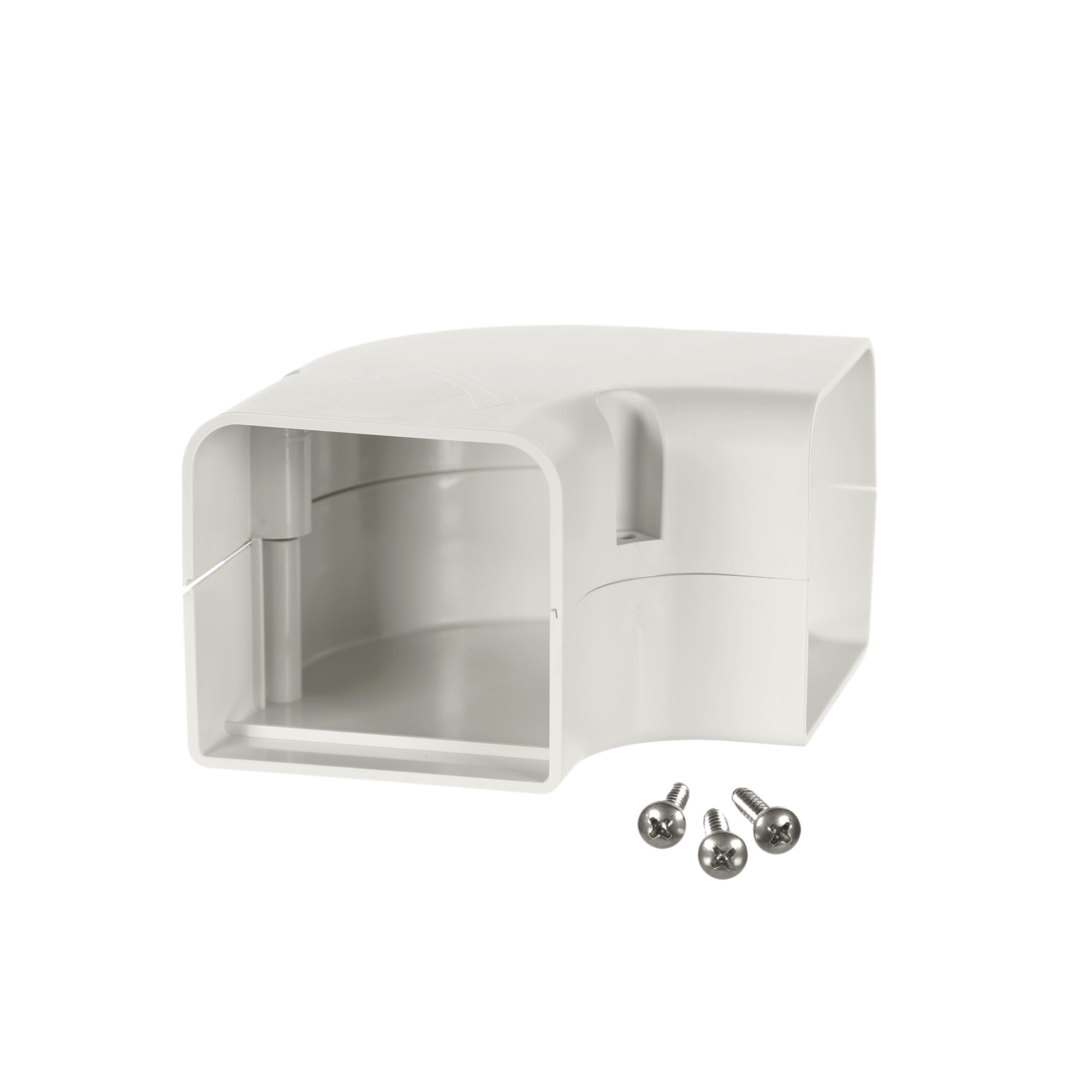 The SpeediChannel™ 230-FB3 3 degree natural color 90 degree flat bend by DiversiTech® is used to route the lineset around an obstacle. Each bend is individually packed and includes stainless steel screws.