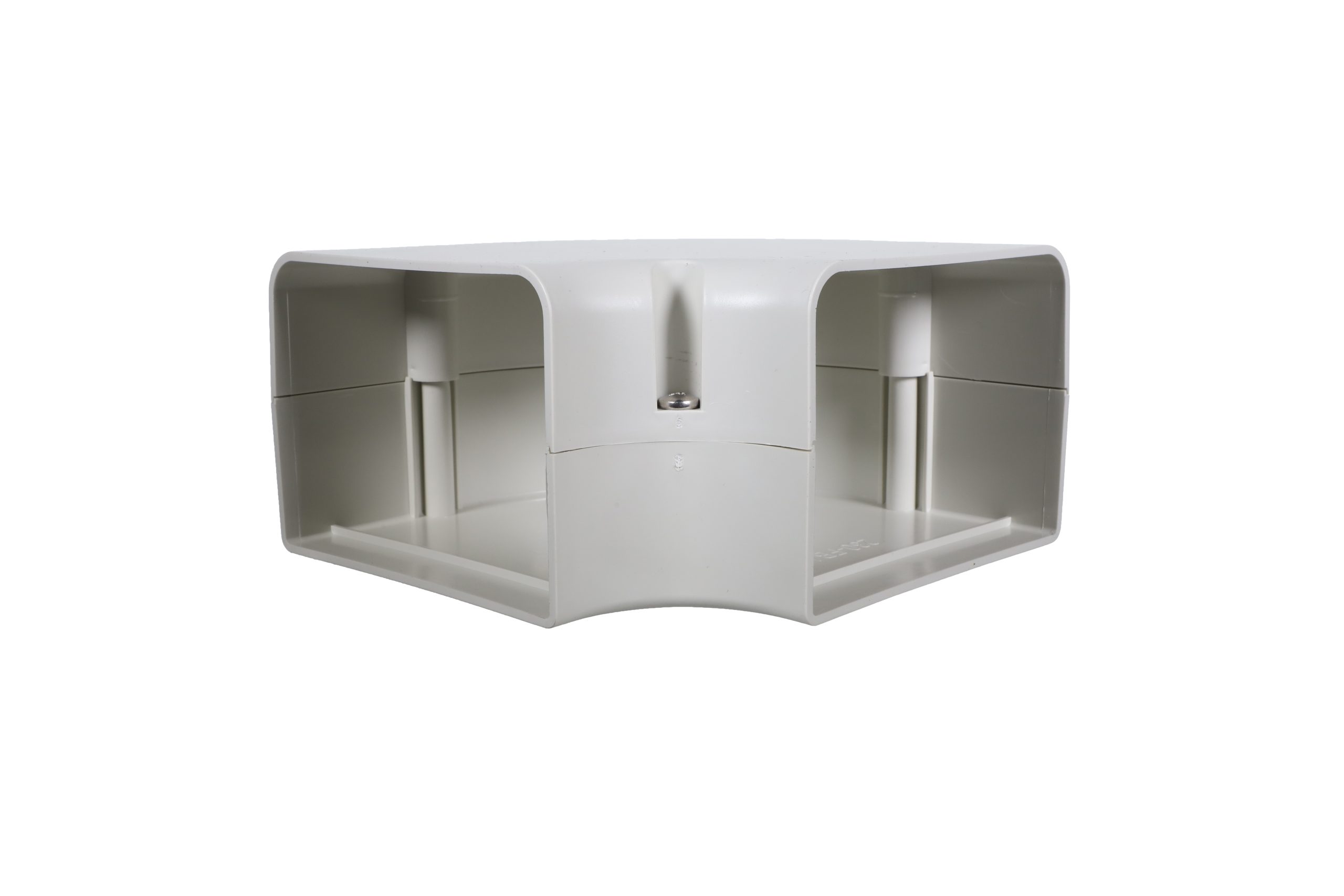 The SpeediChannel™ 230-FB4 4 in. natual color 45 degree flat bend by DiversiTech® is used to route the lineset around an obstacle. Each bend is individually packed and includes stainless steel screws.
