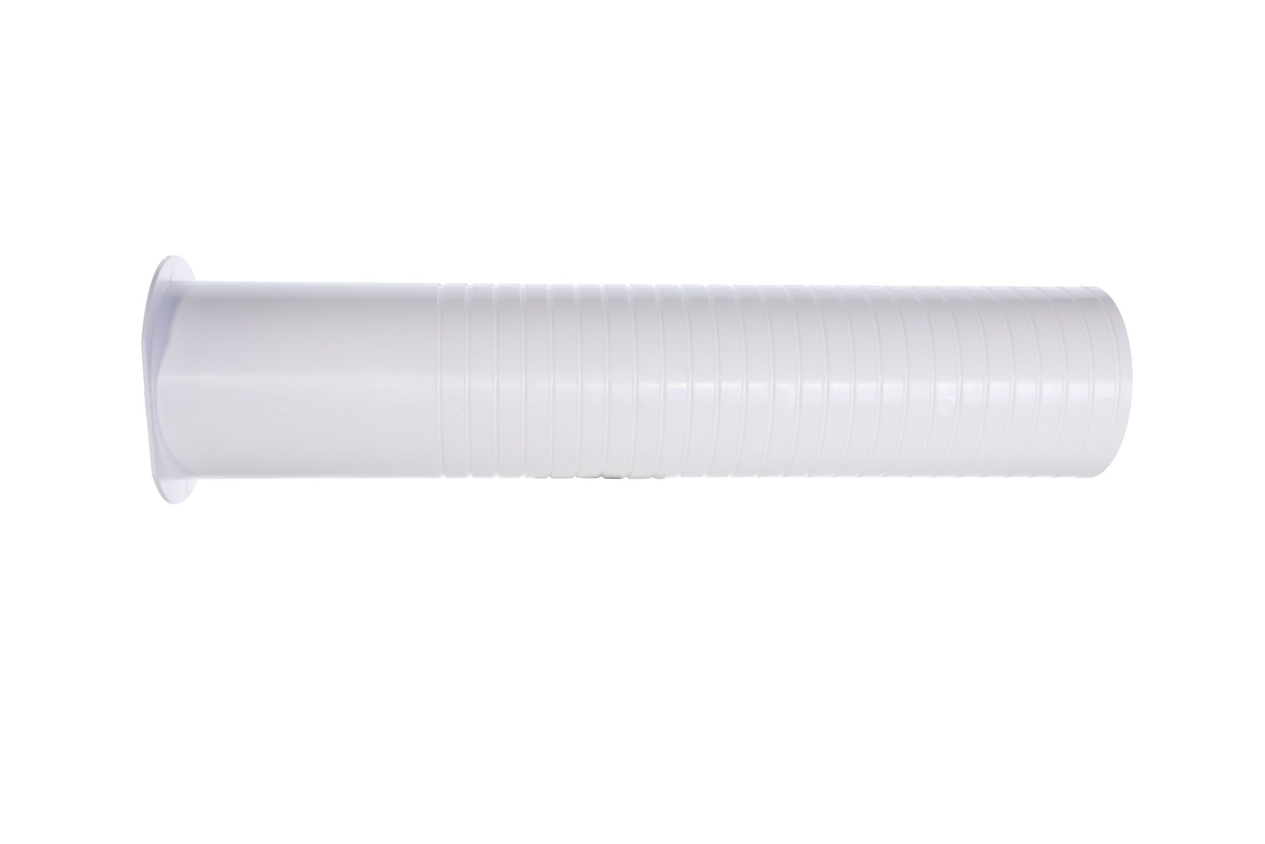 The SpeediChannel® 230-WS3 2-7/8 in. white wall sleeve is used to transition from the channel through a wall penetration. The wall sleeve creates a clean hole through the wall and the lineset is covered by the wall cover.