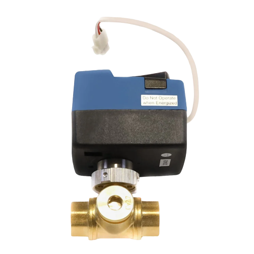 The Trane VAL11357 3-way water valve is designed to control water flow in HVAC hydronic systems. With a 1/2 inch connection size, this valve directs flow between multiple paths, allowing for mixing or diverting applications. It supports temperature control and system balancing by regulating water flow based on system demand, helping maintain consistent performance in heating and cooling operations.