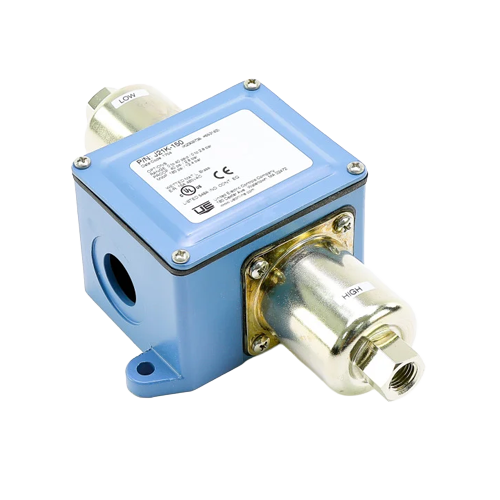 The United Electric J21K-150 differential pressure switch is a versatile, field-adjustable control designed for monitoring pressure differences in HVAC, filtration, and industrial process systems. With an adjustable differential range of 0 to 40 PSI, this switch provides dependable performance for applications such as filter condition monitoring, flow verification, and system protection. The SPDT (single-pole, double-throw) contact configuration allows for flexible wiring of normally open and normally closed circuits. Housed in a NEMA 4-rated enclosure, the J21K-150 offers protection against water and dust, making it suitable for use in both indoor and outdoor environments.