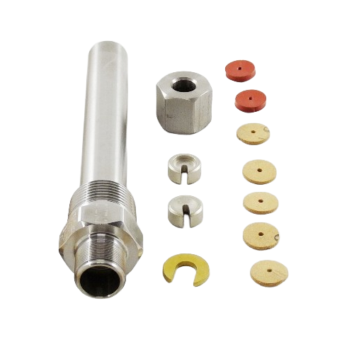 The United Electric SD6225-76 thermowell assembly is designed to provide a secure and protective interface for temperature sensing devices in HVAC and industrial applications. Featuring a 3/4" NPT process connection and a 4-1/2" insertion length, this thermowell allows for accurate temperature measurement while protecting the sensing element from direct exposure to pressurized or corrosive media. Commonly used with temperature switches and sensors, it enables easy removal and replacement of the sensing device without interrupting the system. Built for durability, the SD6225-76 is suitable for use in a wide range of fluid and gas temperature monitoring applications.